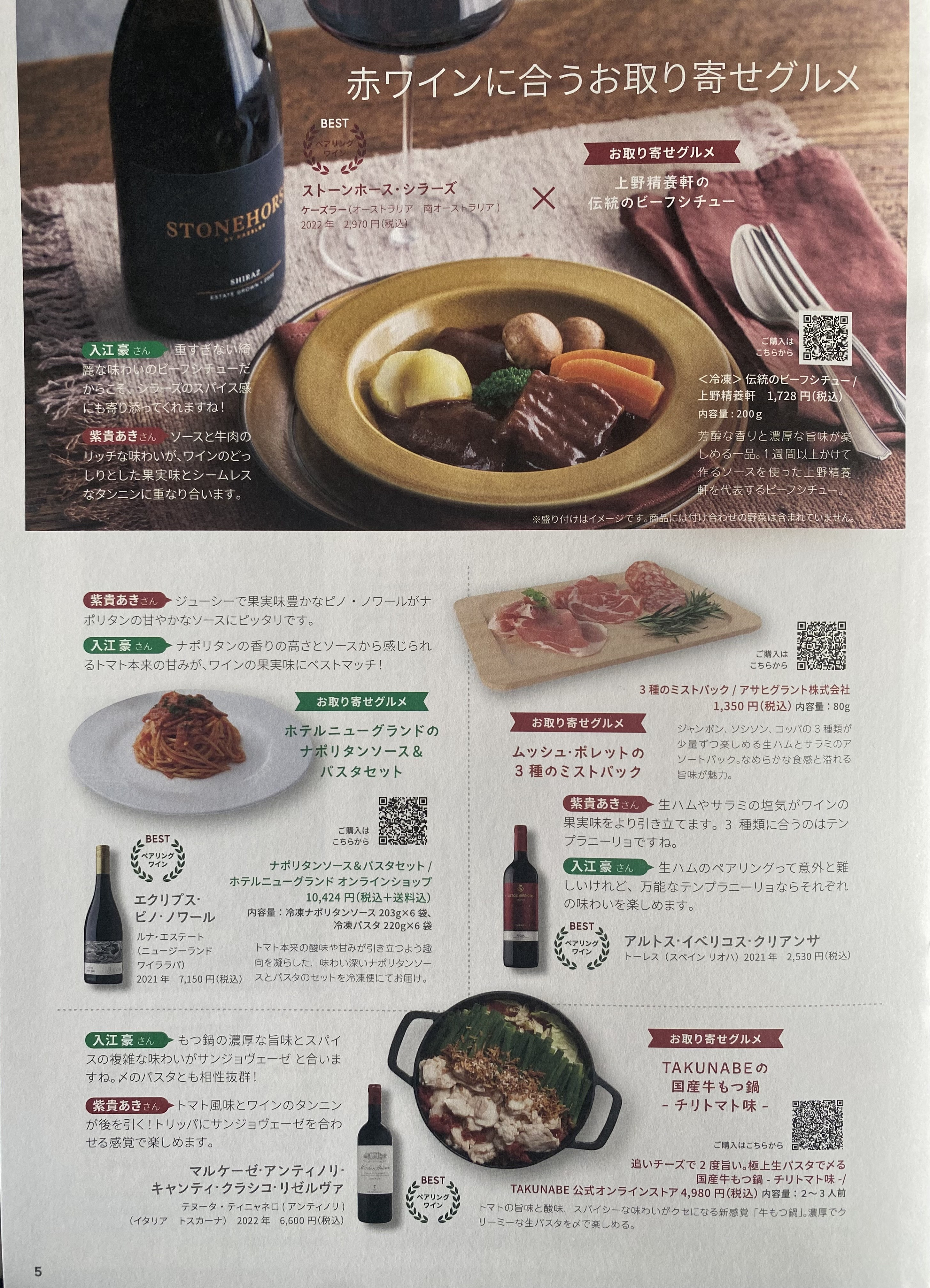 本特集は、ワインのプロであるJSA認定ソムリエ・エクセレンスの柴貴あきさんと、料理のプロである酒飲み料理研究家・入江 豪さんが、全国各地のお取り寄せグルメの中から「ワインに本当に合う逸品」を厳選。さらに16種類のワインと実際にペアリングし、味わいの相性を徹底検証しています。
